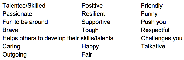 Students then had to say how these people inspired them. What were the characteristics that made them so inspiring. I stated that I didn’t want answers about the job or role that person has had but more what makes that person so much more inspiring than others that have had that job or role. After reflecting on this privately, the students added their reasons to the whiteboard: