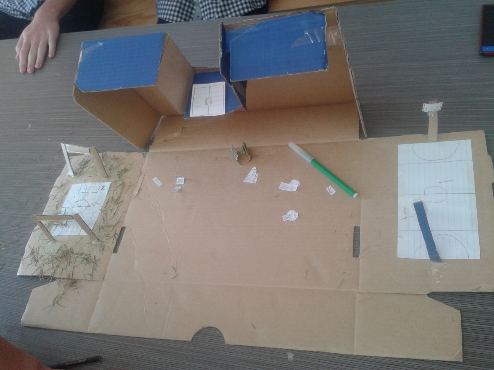 The challenge for the Place and Misplace students was “How Might We best represent Hobsonville Point Secondary School with a box?” Students worked in groups of 3 or 4 and were given a flat file box to make and use. They had just over an hour total to do this. After 35 minutes we had a critique session where they each presented their vision and progress so far. The other groups then gave 1 positive comment and 1 thing to consider. They then had 20 minutes to finish off. I was so impressed with what they made (and incredibly impressed that all groups hacked the boxes in various ways, not using the box in it’s standard shape!).