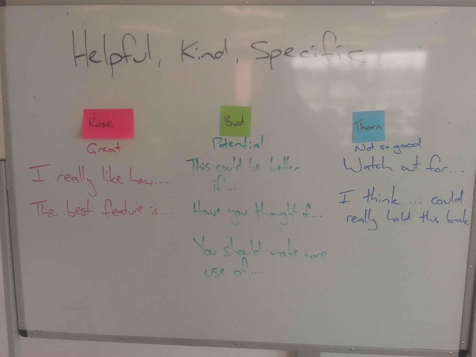Once they had a strong design to share with Pete and/or me they could begin prototyping their solutions. Their first prototypes had to be developed quickly to share with the class and gain some early feedback. This is so they don’t get too far down the track before testing their designs. To ensure the feedback was useful I introduced the idea of Rose, Bud, Thorn feedback. This saw the feedback being from other students, for other students. Once again amplifying the responsibility of students to take ownership of the learning process.