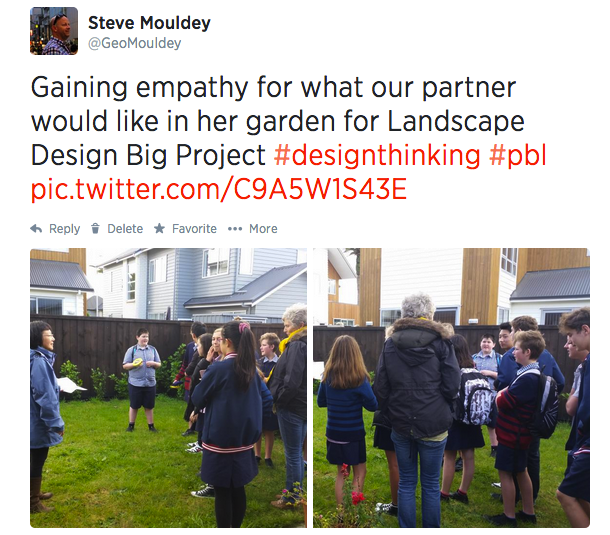 My Big Project group this term are a landscape design group. We are designing and building a garden for a local resident in our developing community. The designs will also be shared with Hobsonville Land Company and Auckland Council as models for future developments. We had started by looking at gardens we liked but this week was all about gaining empathy for what our partner would like.