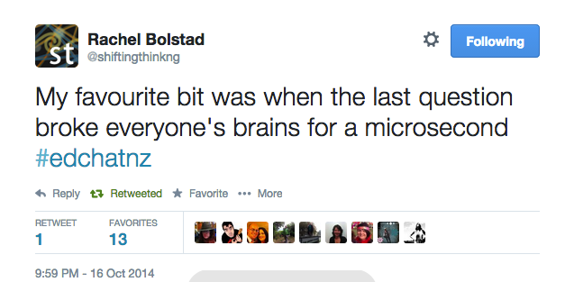 My brain was also broken… and I’m not sure I’ve actually recovered yet. Was a great #edchatNZ!