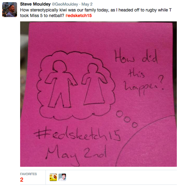 As May began I posted an idea to share a sketch every day this month. 10 days in I am stoked to say that a great group of teachers have joined me in #edsketch15. The large majority from New Zealand and Ireland (thanks Bianca for spreading the word in Ireland!) but also being joined by teachers and students in India, Australia and the US.