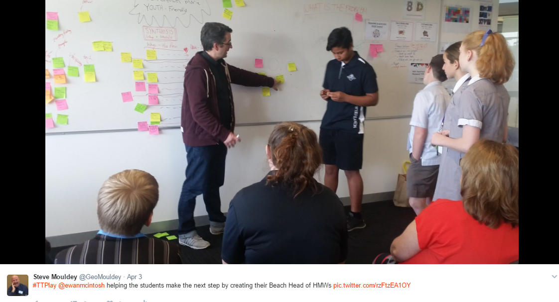 Teach Tech Play ended their conference with a student keynote – students from 2 schools had spent the conference undergoing a Design Thinking challenge with NoTosh about teacher conferences and designed a more interactive session to end Teach Tech Play.