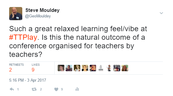 Neither event had exhibition stands. At Teach Tech Play if companies wanted to be there, they had to run a workshop and participate in other sessions like the teachers. Energise was run by Cyclone but even their staff were told their sessions had to be based on tools or strategies rather than get us to help you. This meant that lunch breaks were spent having learning conversations with teachers from other schools rather than wandering display stands, being sold products.