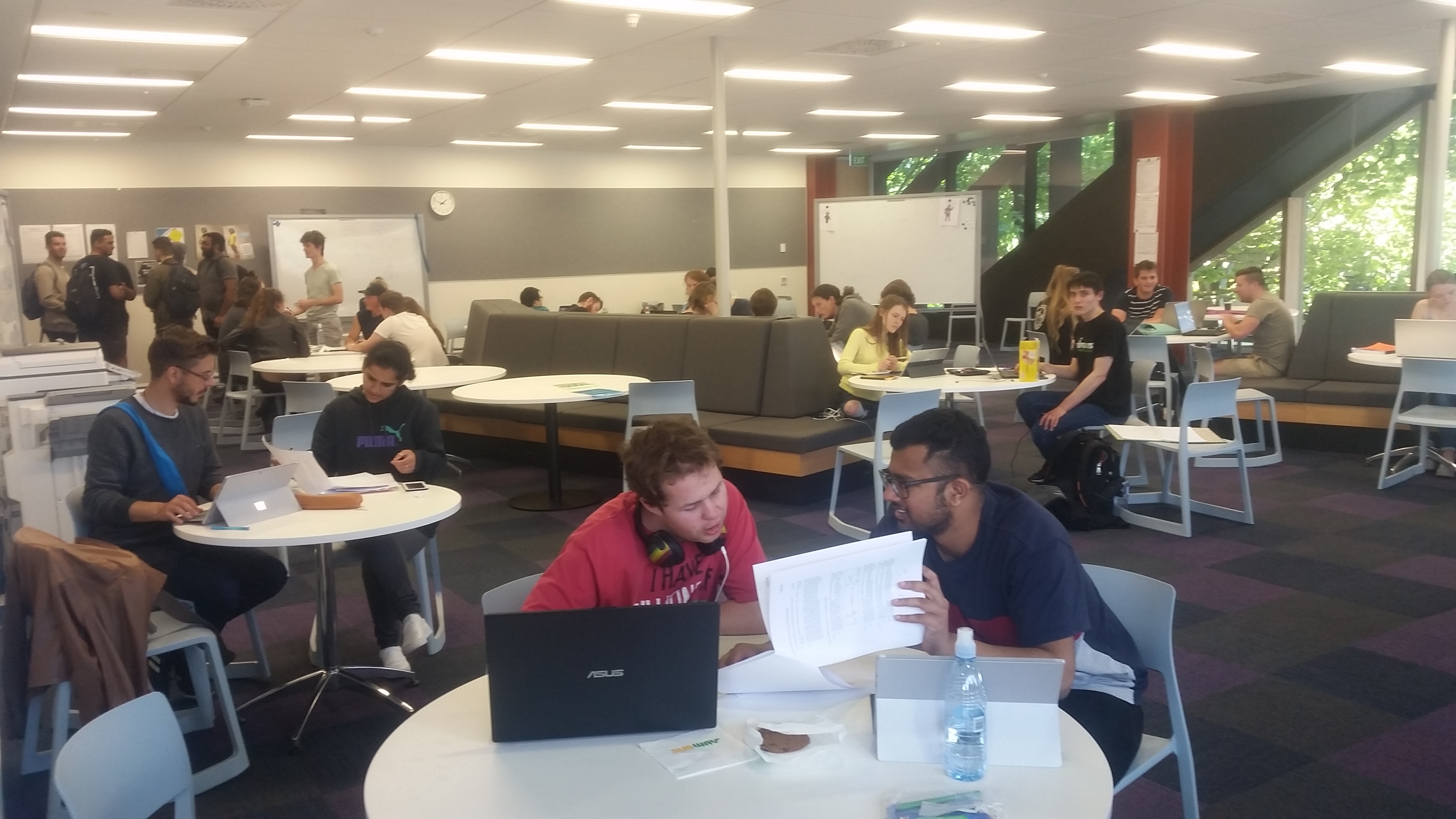 The drop in tutorial centre in the Science building at University of Auckland was full of students revising together for their exams.